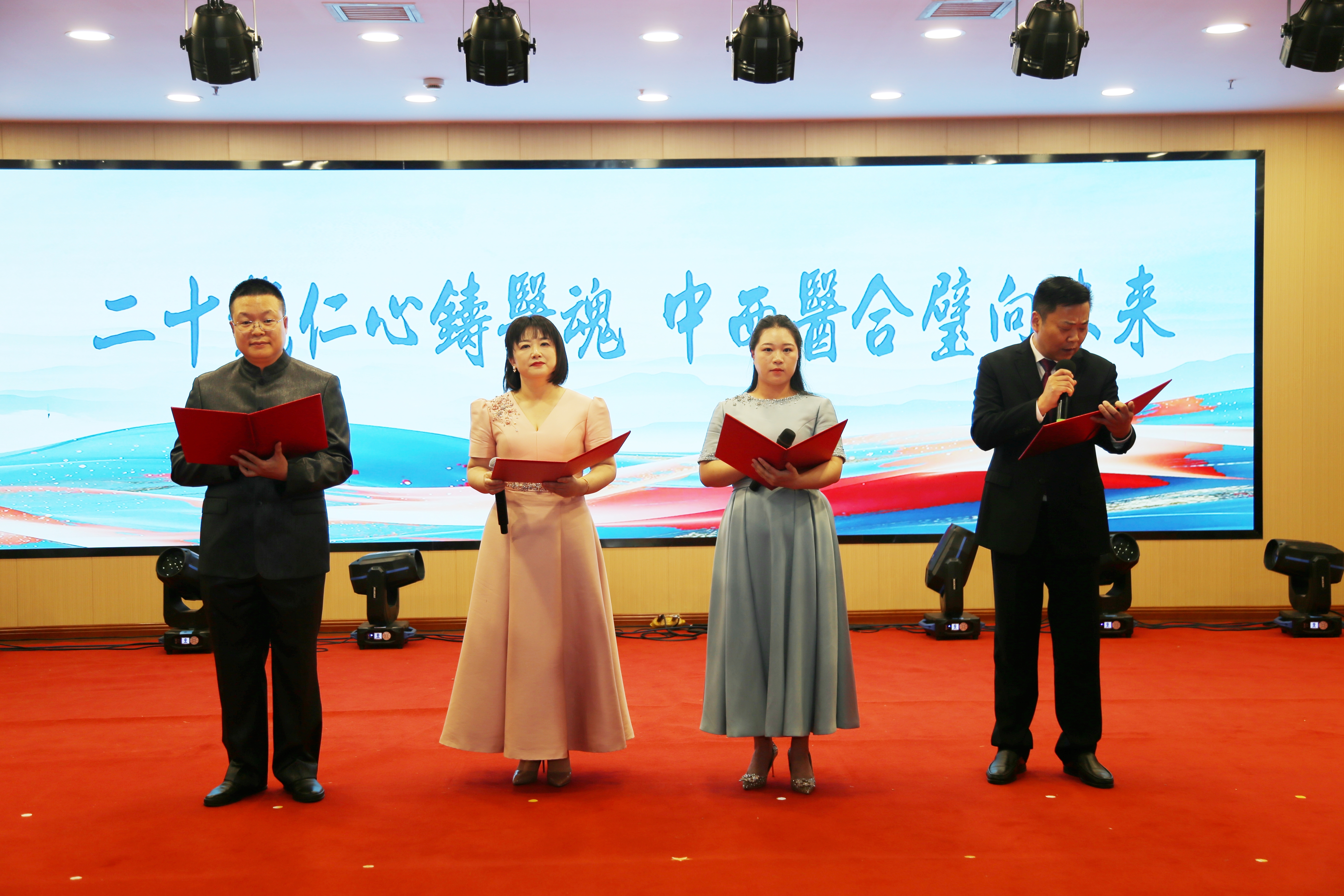 医疗健康事业部带来的诗朗诵《二十载仁心铸医魂 中西医合璧向未来》,字字铿锵、句句滚烫,道尽大家对医院的眷恋与对医学的敬畏,将中西医融合发展的坚定信念传递给在场每一位观众。