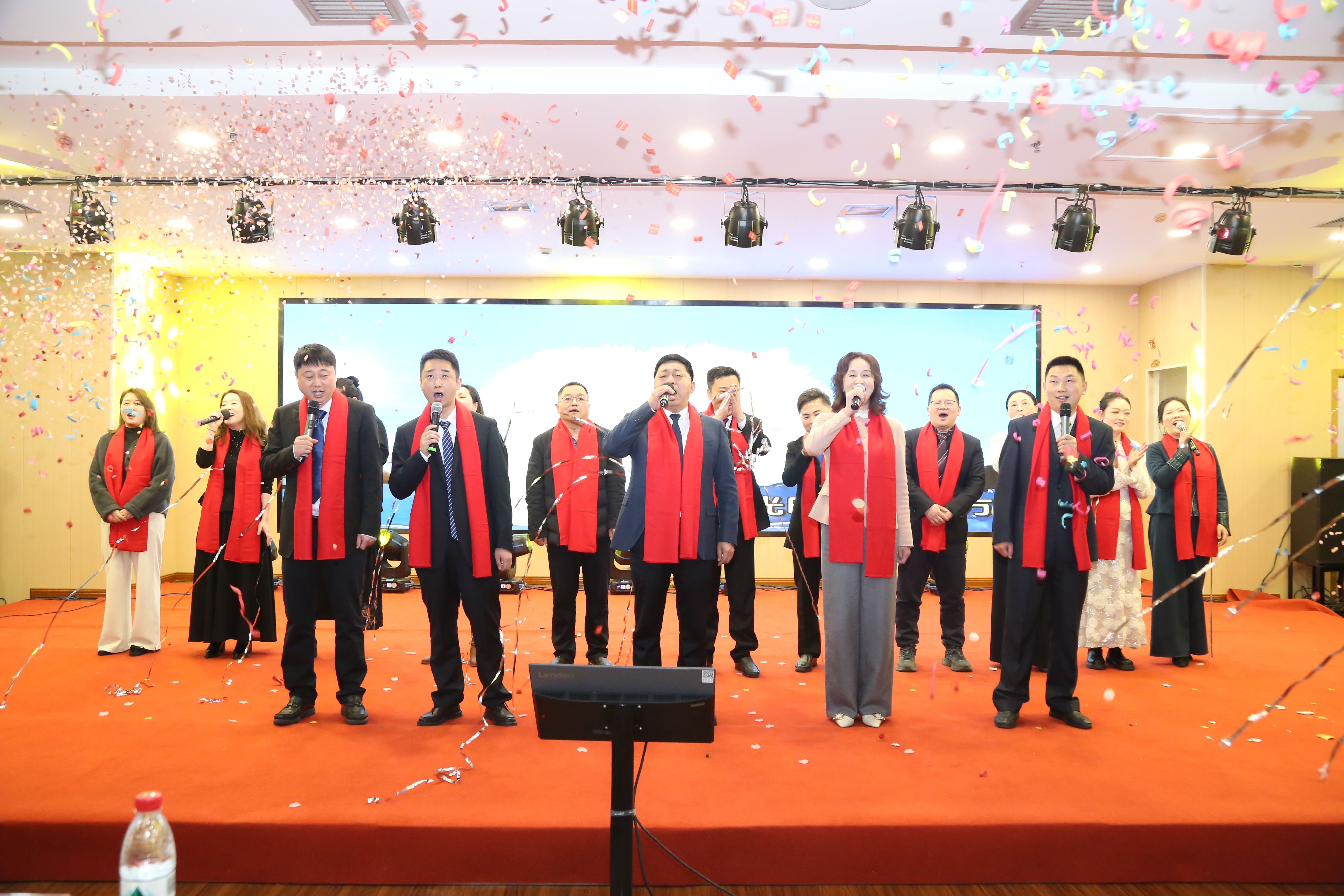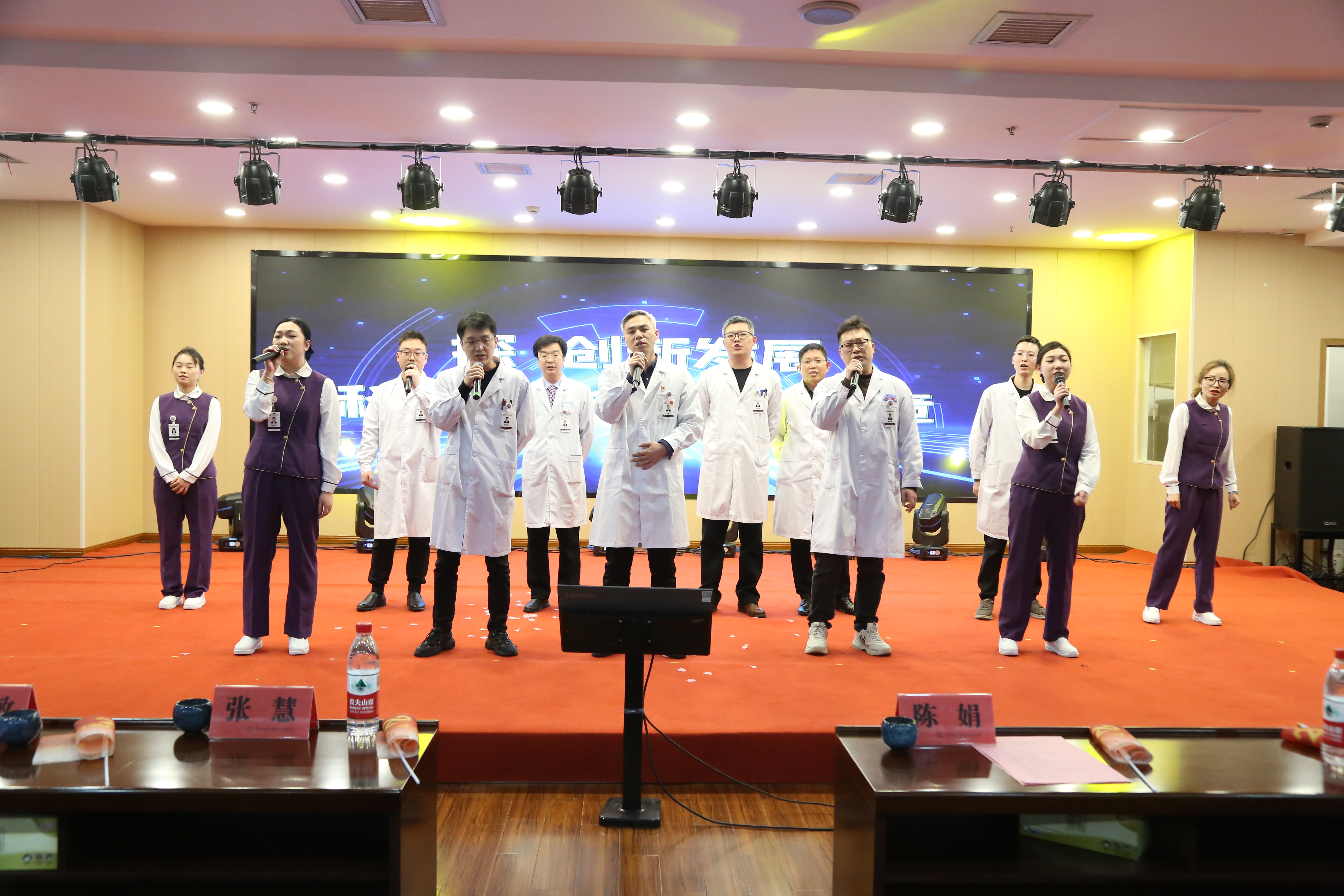 汇演尾声,孙建平书记带领医院领导班子成员、部分科主任、职工代表共同登台,以一首激昂高亢的合唱歌曲《光明》将汇演氛围推向高潮。歌声回荡在会场,既唱出对医院未来的美好憧憬,更传递出“聚力同心、逐光前行”的坚定信念,凝聚起全体员工砥砺奋进的磅礴力量。
