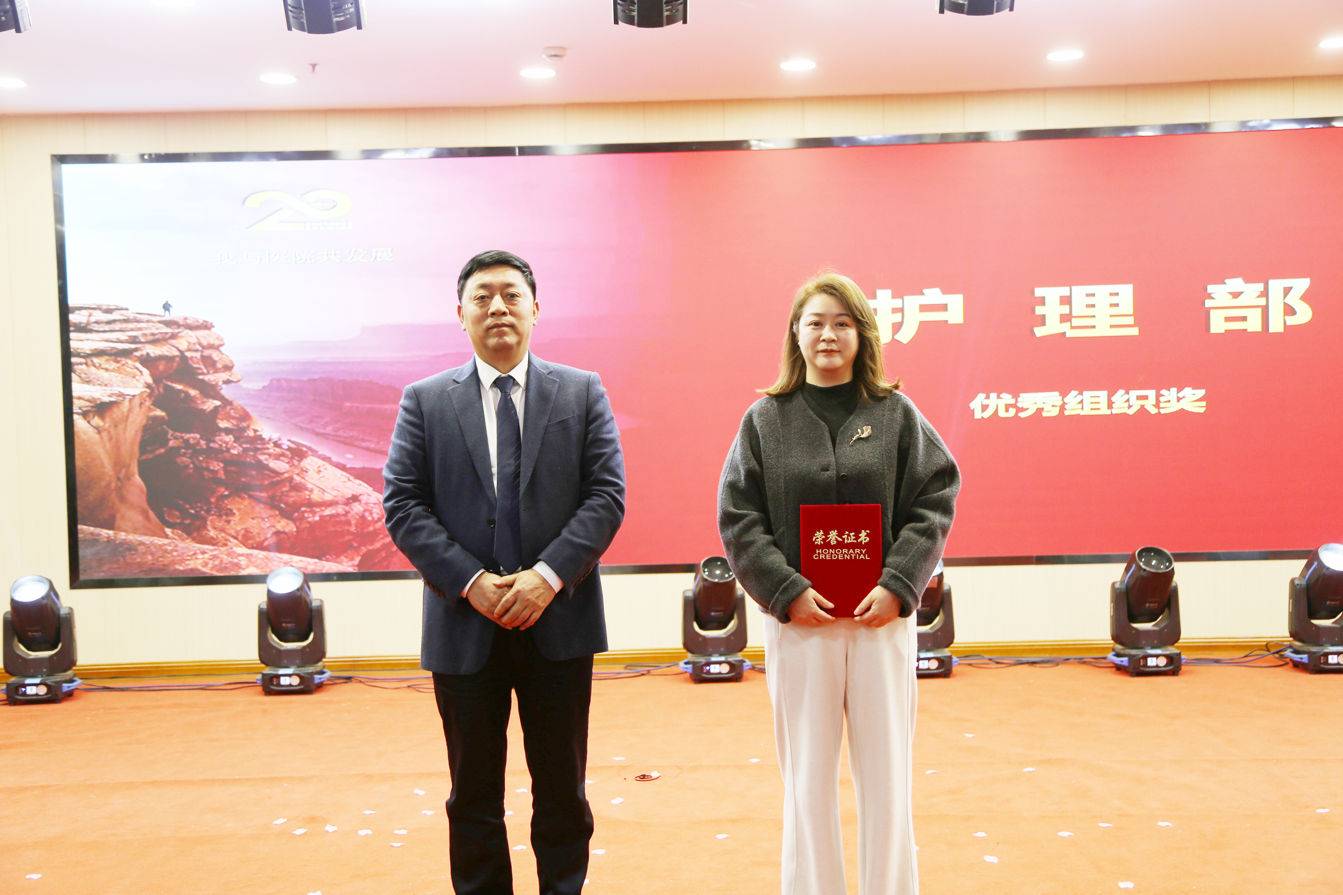 精彩的节目之余,多重特色环节让庆典更具温度与深度。为表彰二十年来的典范员工,活动现场举行了表彰仪式,以隆重的礼遇向20位坚守初心、爱岗敬业的同仁致敬,激励全院职工以榜样为力量,勇担使命再出发。