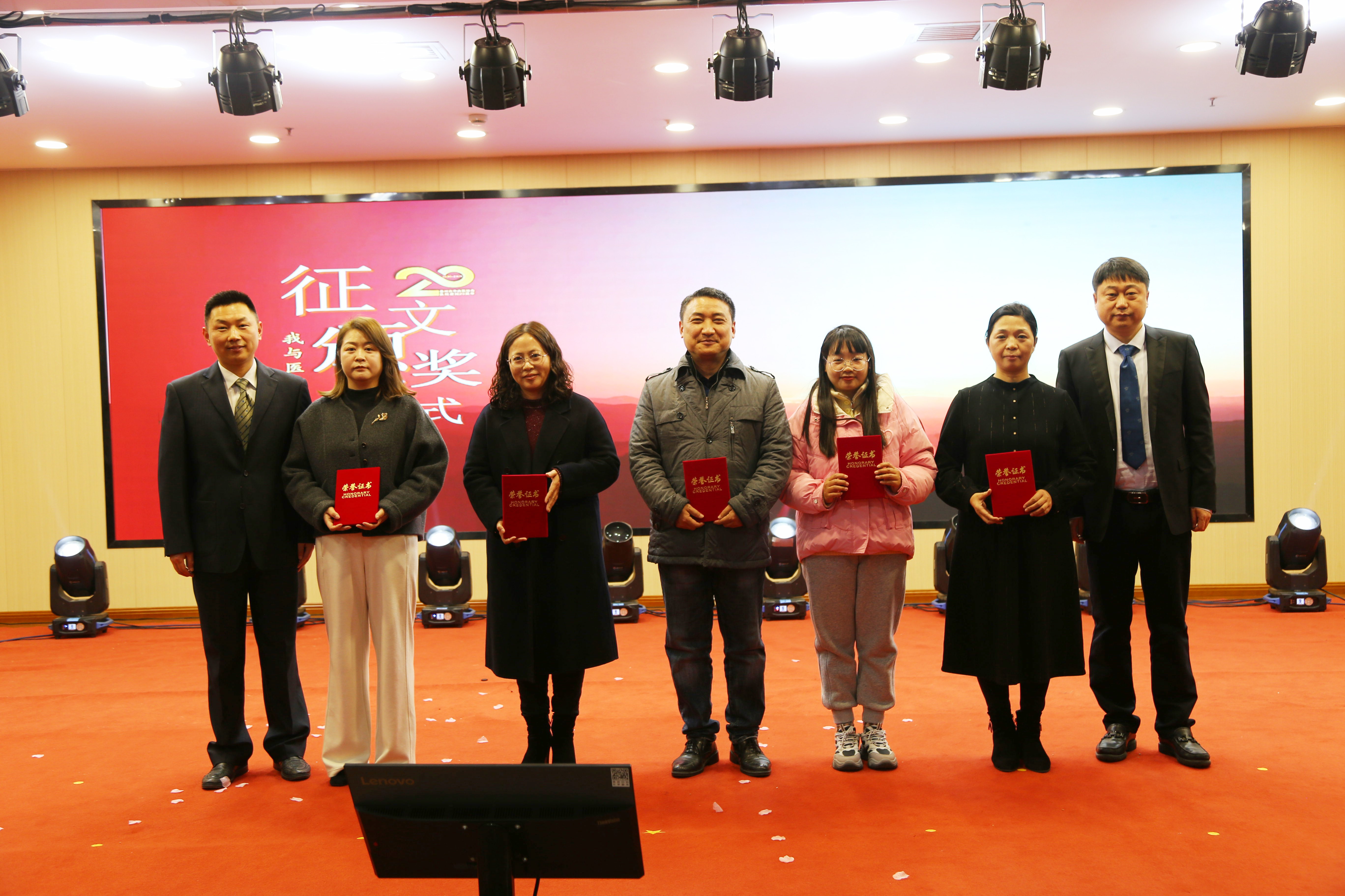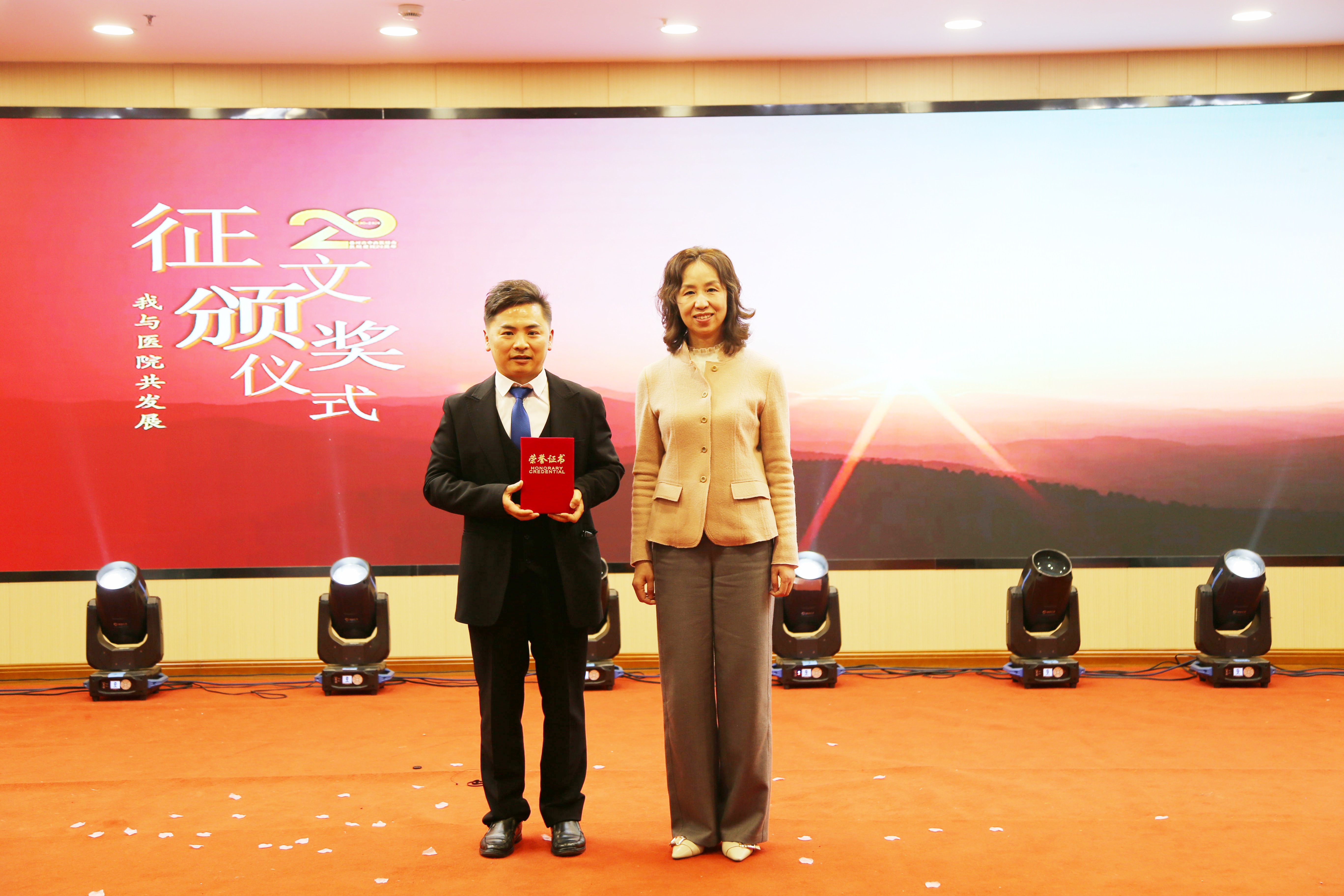 “我与医院共发展”征文颁奖环节同样令人动容。此次征文活动收到近六十篇作品,字里行间满是职工与医院共成长的动人故事与真挚感悟。现场为获奖作者颁发荣誉证书,并展播优秀征文片段。